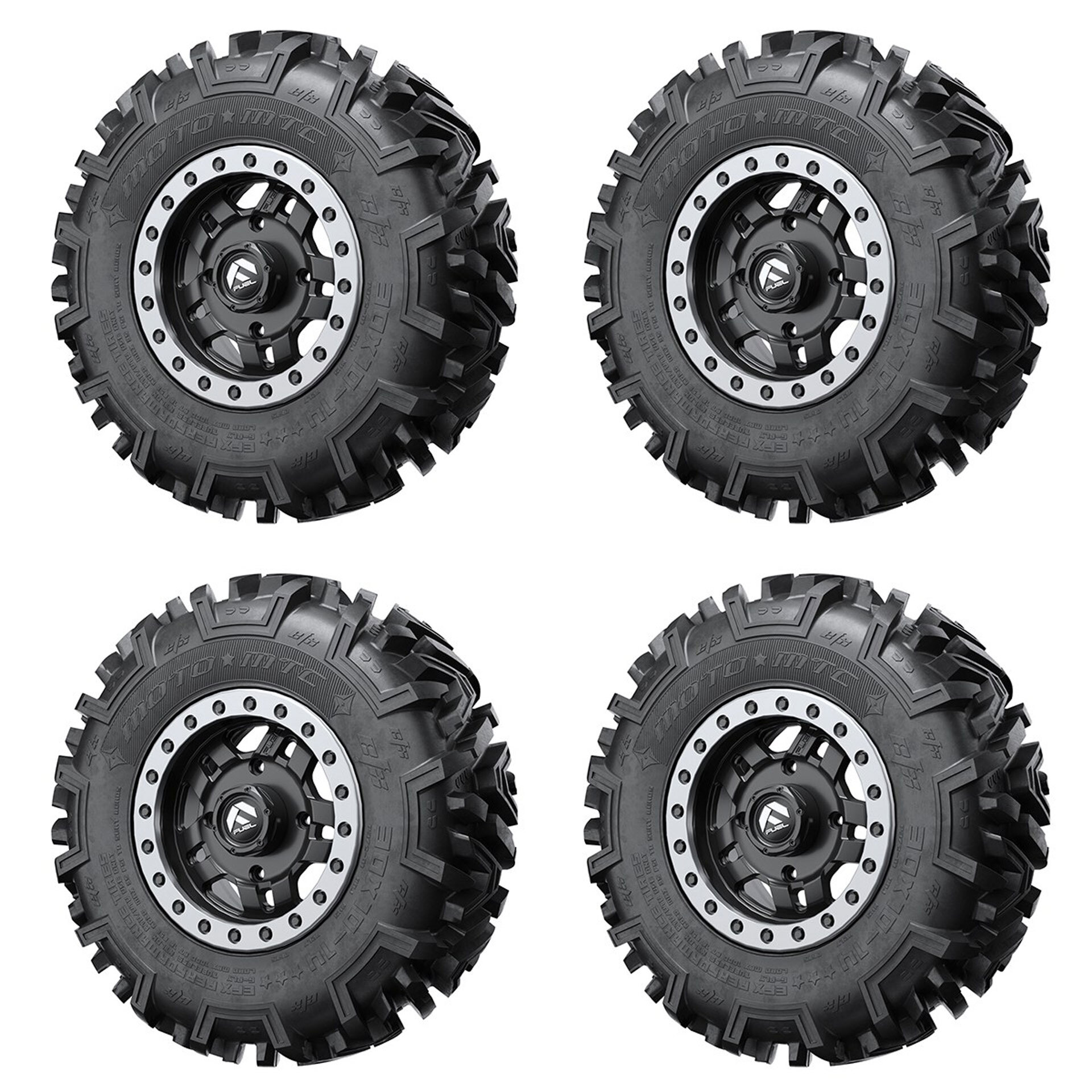 Fuel Anza D557 Non-Beadlock wheel with a matching set of EFX® MotoMTC tires provides additional ground clearance along with exceptional terrain traction. This package will enhance the look and hard terrain performance of your Yamaha. The MotoMTC is a proven tire design that adds immediate performance and response to your machine on and off the trails. This tire will climb rocks, grab roots and even perform in light mud and sand.
