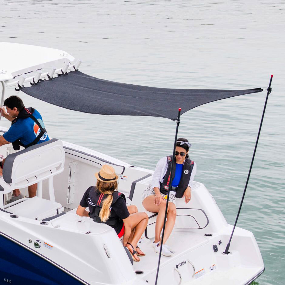 The 25 FT FSH Aft Shade Kit provides coverage from the rocket launchers to the top of the swim platform