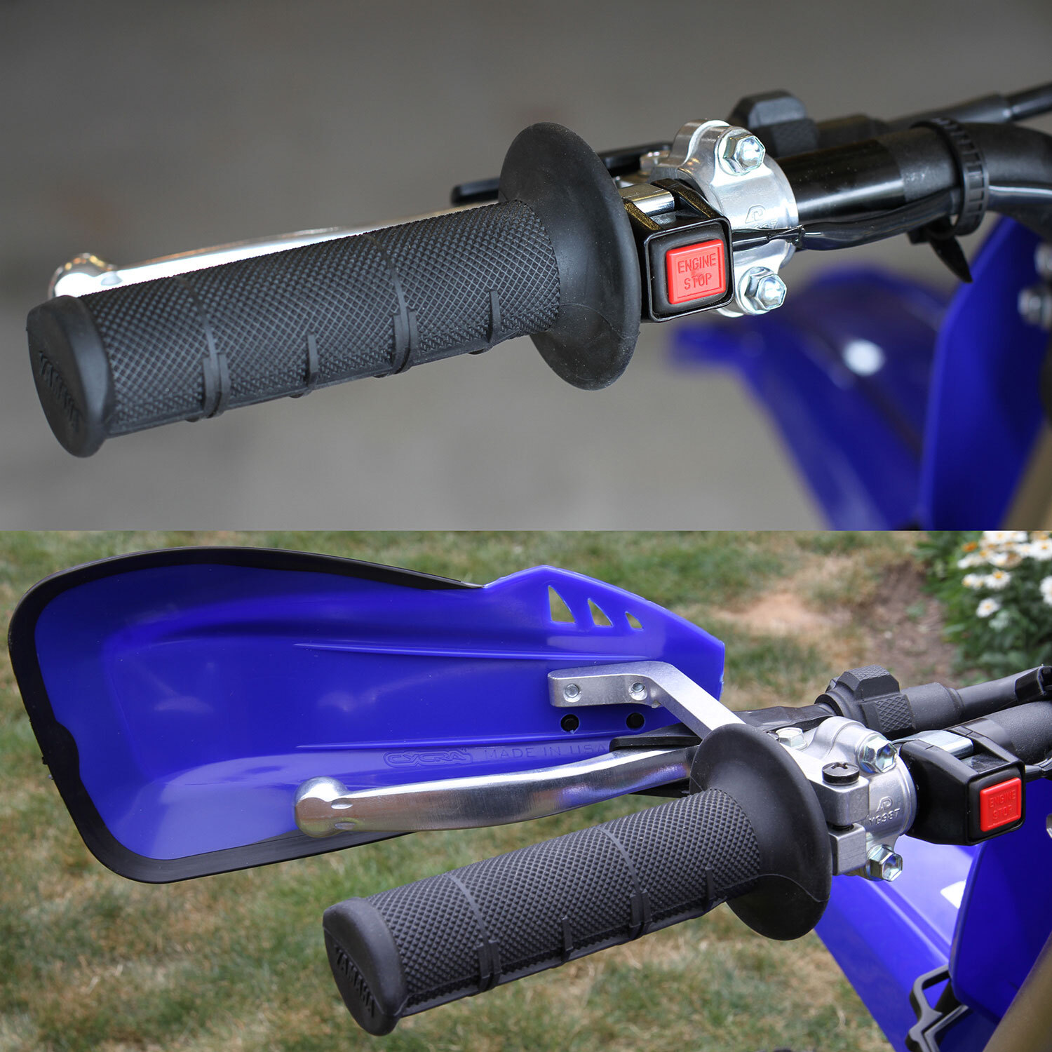 These open handguards offer riders an inexpensive option to protect their hands on and off the track. A flexible rubber edge provides 20% more coverage than traditional Stealth hand guards.