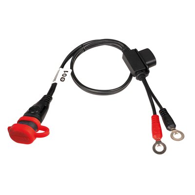 Easy permanent weatherproof connection to the battery in your powersport vehicle. With M6 (1/4") - M8 (5/16") ringlets that perfectly fit to powersport and most automotive battery terminals. Custom designed, SAE connector with snug weatherproof seal and cap- keeps out dirt and water. Zip-tie slits allow easy and secure fastening to vehicle- provides a nice unobtrusive plugin. Perfect for use in th...