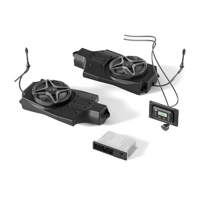 Perfectly integrates into the doors of the unit and provides amazing sound clarity with dedicated speaker pod enclosures. Easy installation with integrated mount locations for a user-friendly and out-of-the-way design Bluetooth®, AM, FM and dash-mounted AUX input-friendly Includes MRB3 head unit, 200w amp, wiring and two 6.5" SSV Mari...