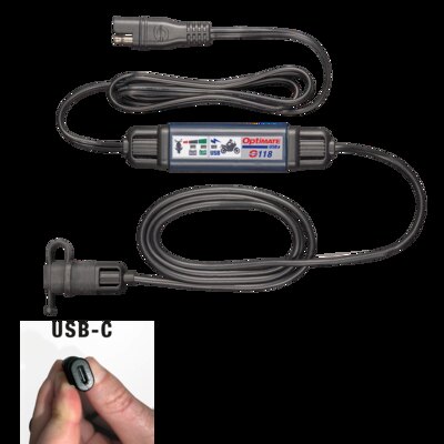 The fully sealed in-line SAE to USB-C 3300mA charger with 150cm / 60in of cable delivers safe and fast USB charging to your phone or other device that needs charging, either on the handlebar or inside your tankbag or pannier ? Charge cable routes to where USB-C charging is needed! ...