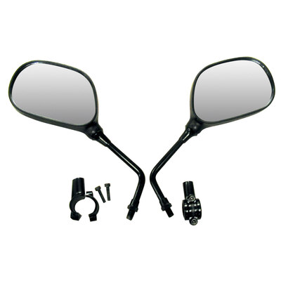 Keep an eye on what's around you and stay aware of your surroundings. This oval shaped mirror kit will fit any ATV, off-road motorcycle, or snowmobile with 7/8" handlebars. Simply attach the clamps to the handlebars, screw the mirrors into the clamps, and adjust them to your preferred view Includes all necessary mounting hardware Sold in pai...