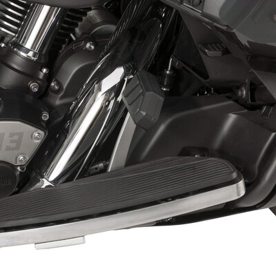 Simply replaces the stock peg-style pedal for increased rider comfort, and an integrated, custom look. Adds the convenience of a full-size pedal to the existing stock rear brake lever CNC machined from 6061-T6 billet aluminum and finished with a satin black powder coated finish for durability Non-scuff, slip resistant rubber inserts fo...