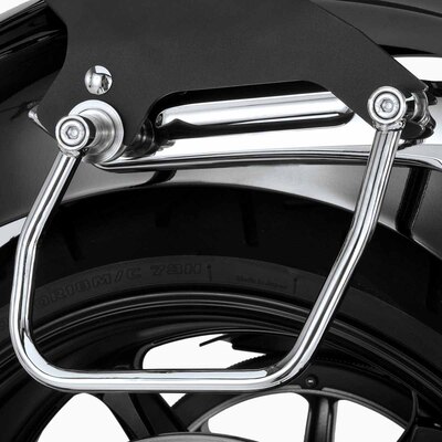 Positions the saddlebags away from the fender to allow clearance for swing arm movement. Lightweight steel tube design with a chrome finish Works with or without the passenger backrest Sold in pairs Saddlebag Support Bar Mount is required if installing on the bike without a passenger backrest, sold separately &n...