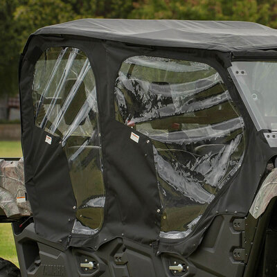 Protects occupants from rain, wind, mud, and light trail debris. Quick snap-on/pull-off installation Zippers operate in conjunction with doors for easy in/out access Windows can be rolled up and secured with straps when not needed Made of durable SurLast® 300 denier nylon, and clear vinyl Attaches with hook-and-loop and pe...