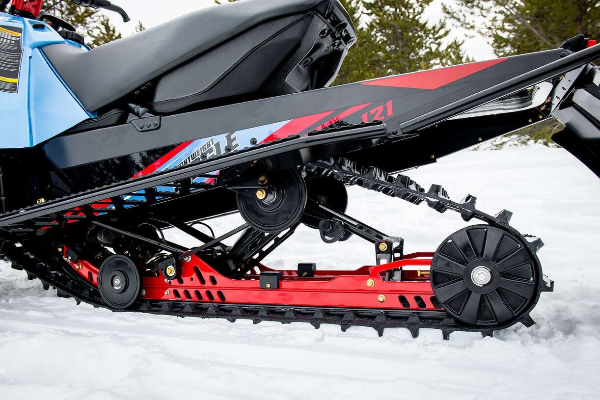 The lightweight 121-inch track is slightly narrower (14 inch) with shorter (1 inch) lugs for agility and balanced handling, helping make the sled feel as light and sporty as it looks.